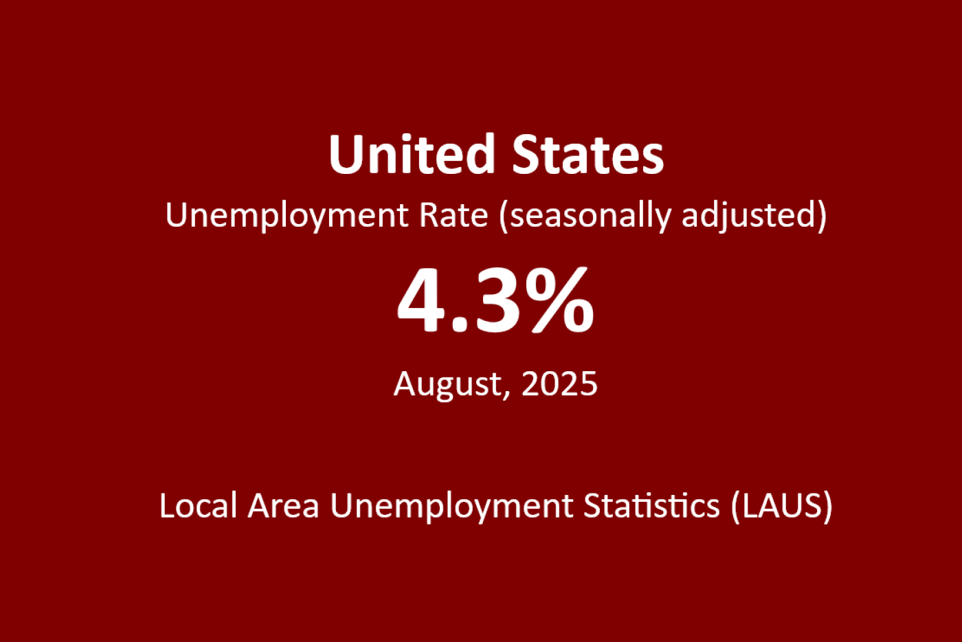 While the CPS produces the national unemployment rate, the LAUS program produces unemployment rates for states, counties, and large cities. LAUS uses the same formula as the CPS shown above. You might wonder, “Why do we need LAUS if we have the CPS?” The answer is that the CPS sample size doesn’t include enough households in each smaller area (e.g., states, counties) to produce reliable numbers for these areas.